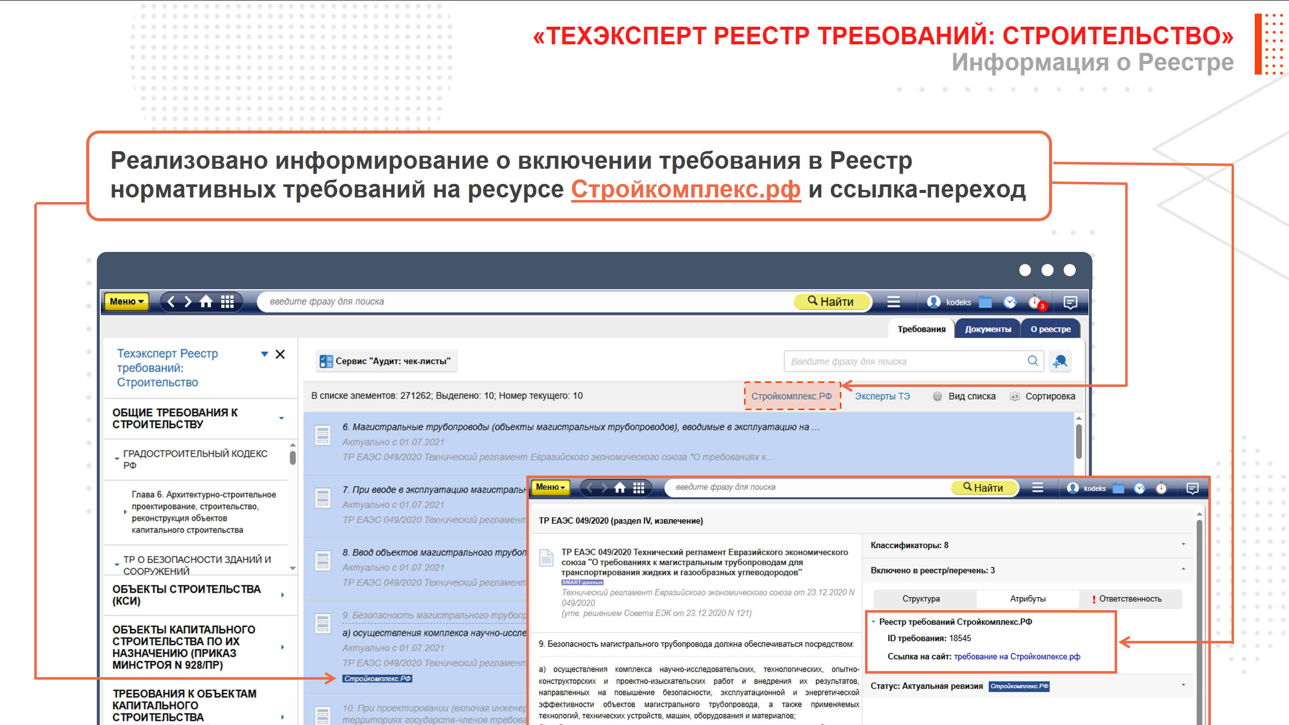 «Техэксперт Реестр требований: Строительство» — это первая в России система, которая предоставляет рабочие инструменты для работы с требованиями: