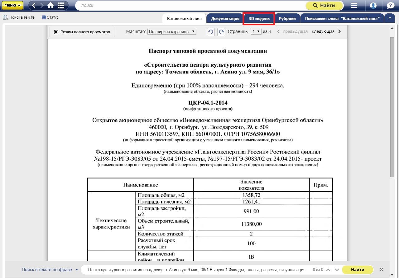 Под ярлыком специалисты найдут материал, который снабжен наглядным трехмерным изображением здания, и файл с самой 3D-моделью.