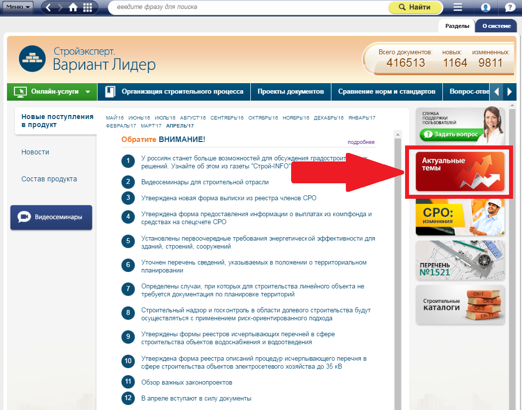 Можно с уверенностью сказать: баннер «Актуальные темы» в системах «Техэксперт» дает специалисту полную и только актуальную информацию о самых важных новостях строительной отрасли!