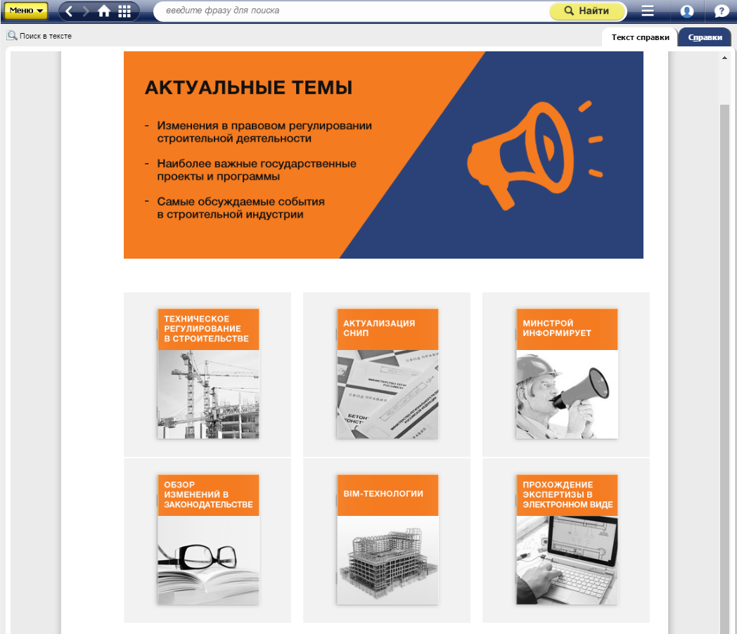 Подробно о том, какой материал содержится под баннером «Актуальные темы». На сегодняшний день специалисту доступен подробный материал шести актуальных тем в области строительства: