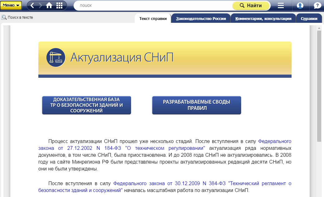 Помимо этого, специалисту доступны список утвержденных сводов правил с информацией по их применению и датой вступления в силу, что позволит применять в работе только актуальные правила.