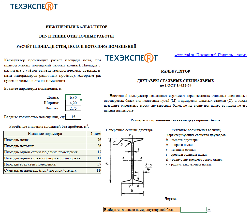 Каждый калькулятор представляет собой электронный документ, выполненный в формате программы «Microsoft Office Excel» и основанный на действующих нормативно-технических документах.