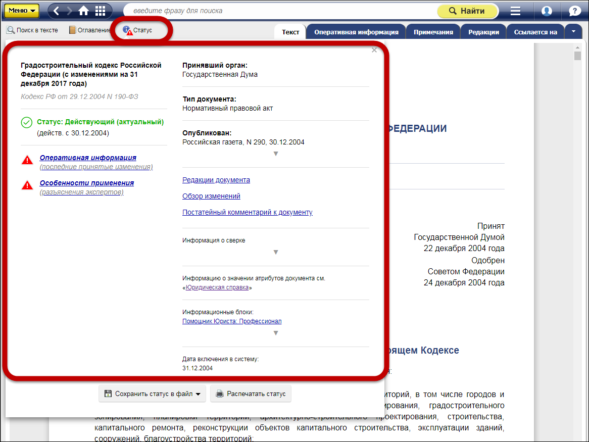 - легко найдете всю необходимую информацию о документе: от статуса до принявшего органа.
