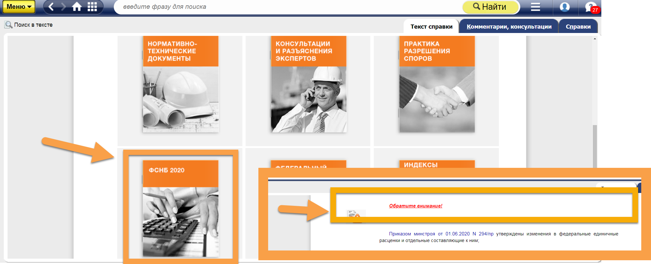 В сервисе под кнопкой «ФСНБ 2020» отражены самые важные новые и актуальные документы. Вы найдете их под заголовком «Обратите внимание!»