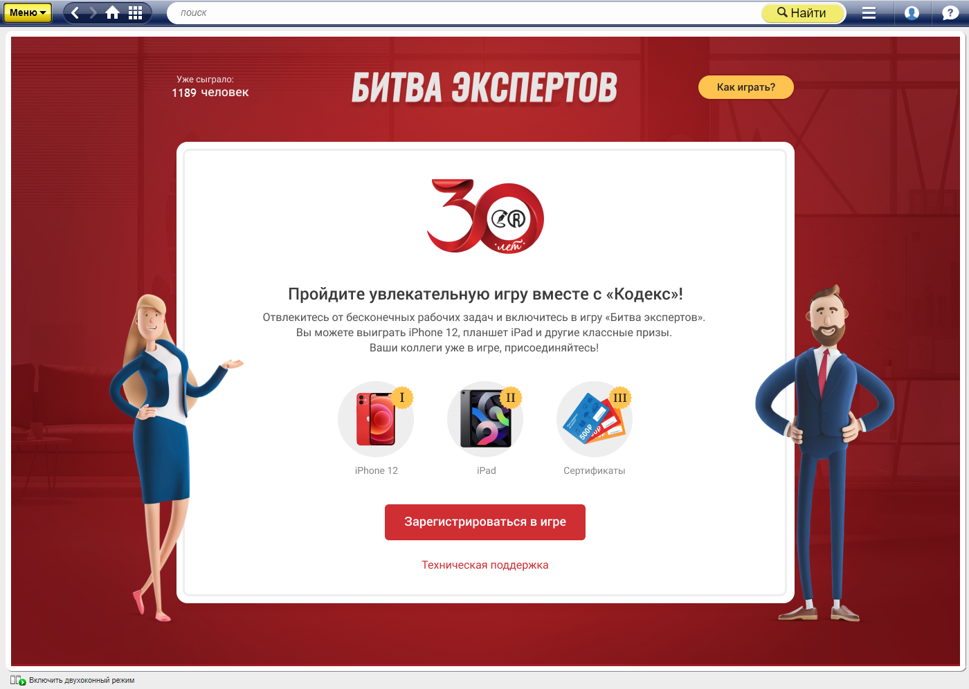 В системах «Кодекс»/«Техэксперт» проходит онлайн-игра с ценными призами