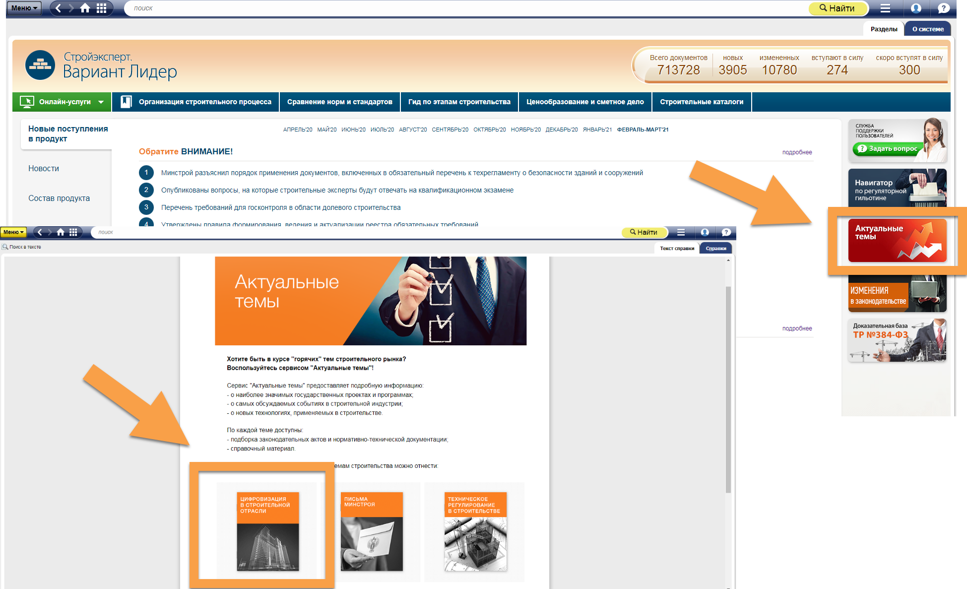 Для того чтобы вы были в курсе последних событий отрасли в сфере современных цифровых технологий, в строительной линейке «Техэксперт» был создан сервис «Цифровизация строительной отрасли». Кроме функции своевременного информирования, сервис дает справочную информацию, которая поможет вам внедрять новые цифровые и инженерные инструменты непосредственно в свою работу.