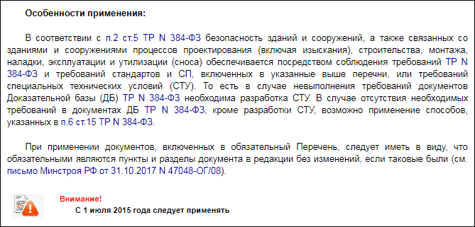 - особенности применения каждого документа, входящего в ТР № 384-ФЗ.