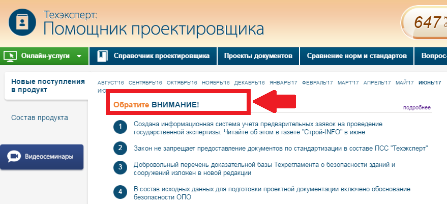 1. Сервис «Обратите внимание». Размещен на главных страницах всех систем и предоставляет подборку актуальных новостей со ссылкой на действующие законы. Так, вы можете не только ознакомиться со всеми изменениями строительной отрасли, но и разобраться в их законодательной основе.