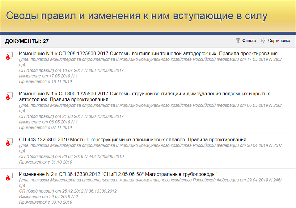 3. Сервис «Своды правил и изменения к ним»