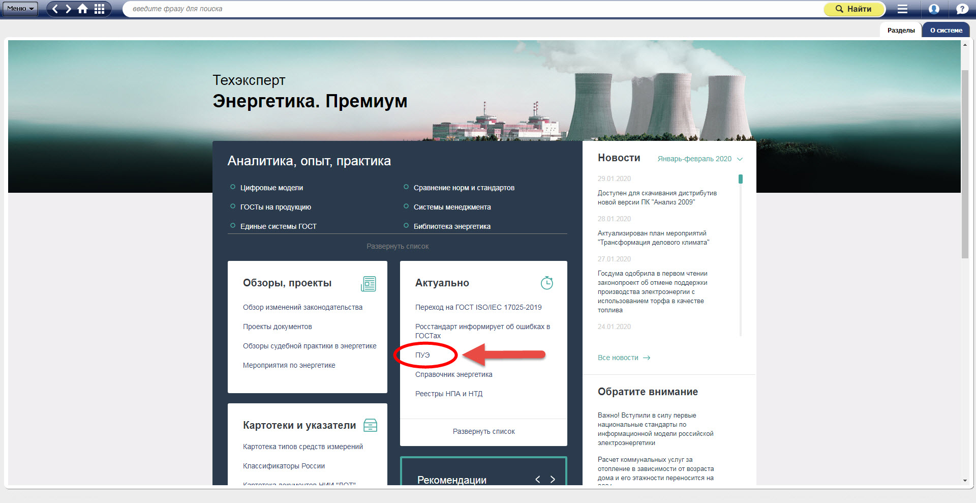 Справочная информация находится в блоке «Актуально» в продукте Техэксперт: «Энергетика. Премиум» и выведена отдельным баннером в продукте Техэксперт: «Электроэнергетика».