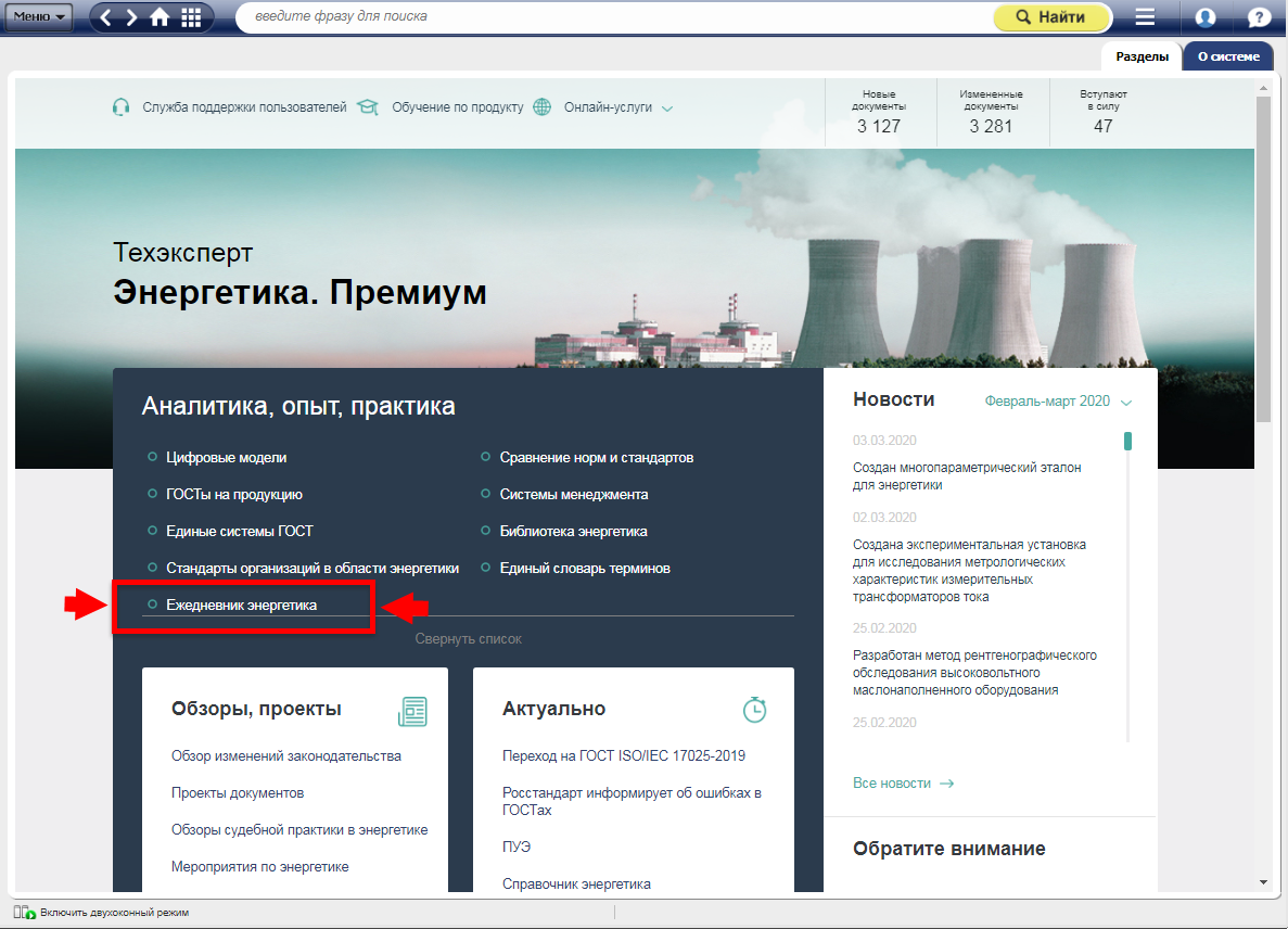 Если у вас еще не подключена система Техэксперт: «Энергетика. Премиум» / «Теплоэнергетика» / «Электроэнергетика» то вы всегда можете получить бесплатный доступ, нажав на кнопку «попробовать бесплатно», расположенную справа на главной странице издания.