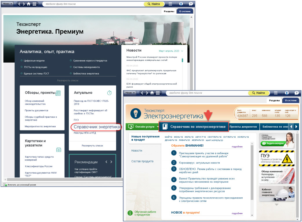 Сервис доступен с главной страницы информационных систем «Техэксперт: Энергетика. Премиум / Электроэнергетика».