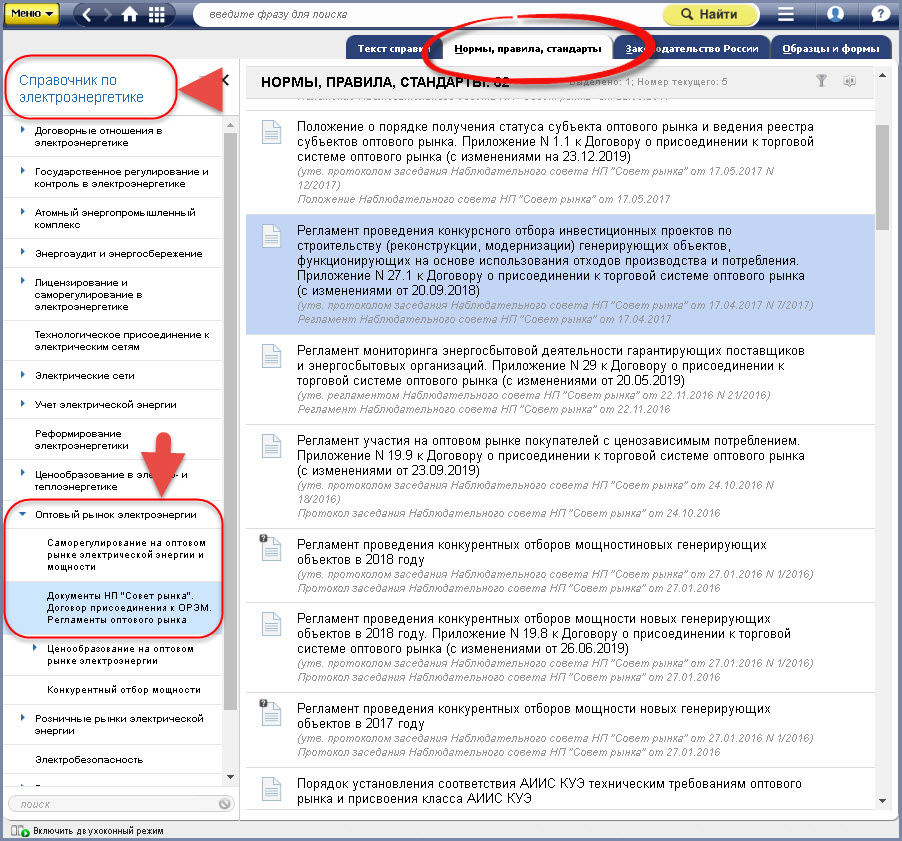 Избежать нарушения требований Договора о присоединении к торговой системе оптового рынка вы можете, ознакомившись с Регламентами ОРЭМ, которые находятся на вкладке «Нормы, правила, стандарты» в сервисе «Справочник энергетика».
