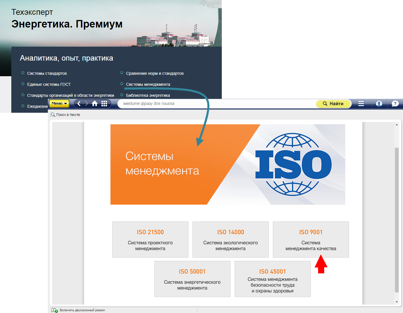 Доступны важные материалы с Главной страницы системы «Энергетика. Премиум». Обратите внимание на блок «Аналитика, опыт, практика», где по ссылке «Системы менеджмента» вы переходите к интересующим направлениям менеджмента.