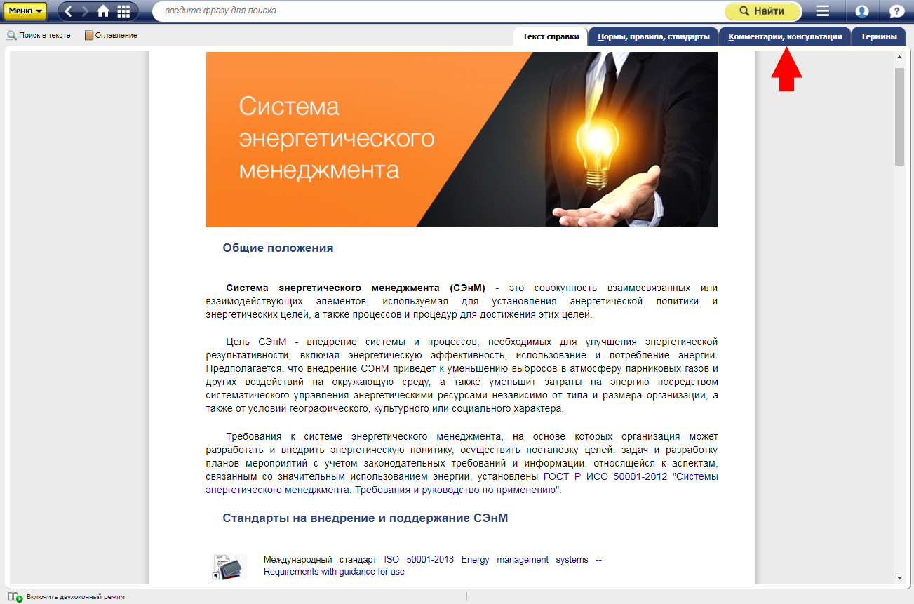 В связи с международными тенденциями в системы «Техэксперт» включены материалы по основным направлениям систем менеджмента, в том числе система энергетического менеджмента.