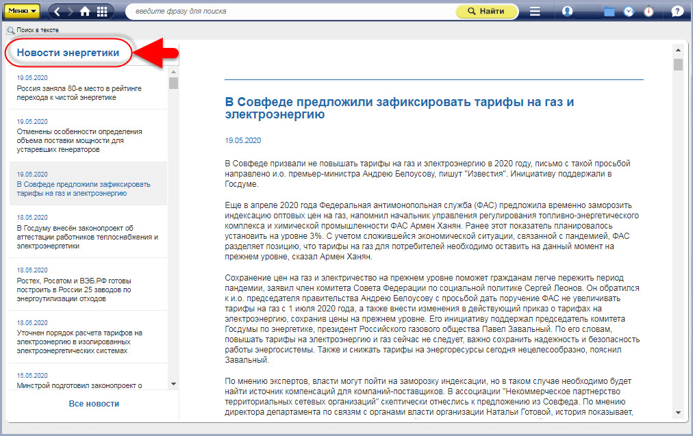 Каким образом вы можете это сделать? Вы можете отслеживать новости в новостном блоке на главной странице вашей системы. Здесь собраны все важные события и тренды энергетической отрасли: