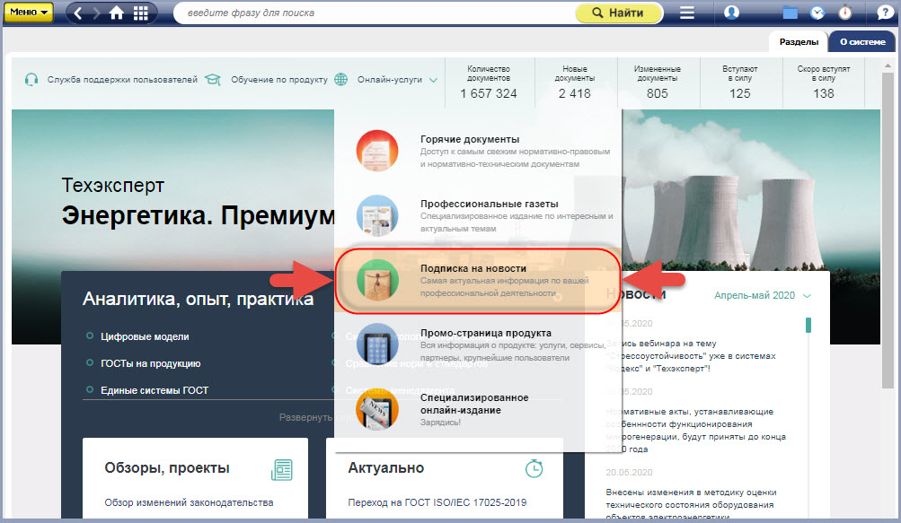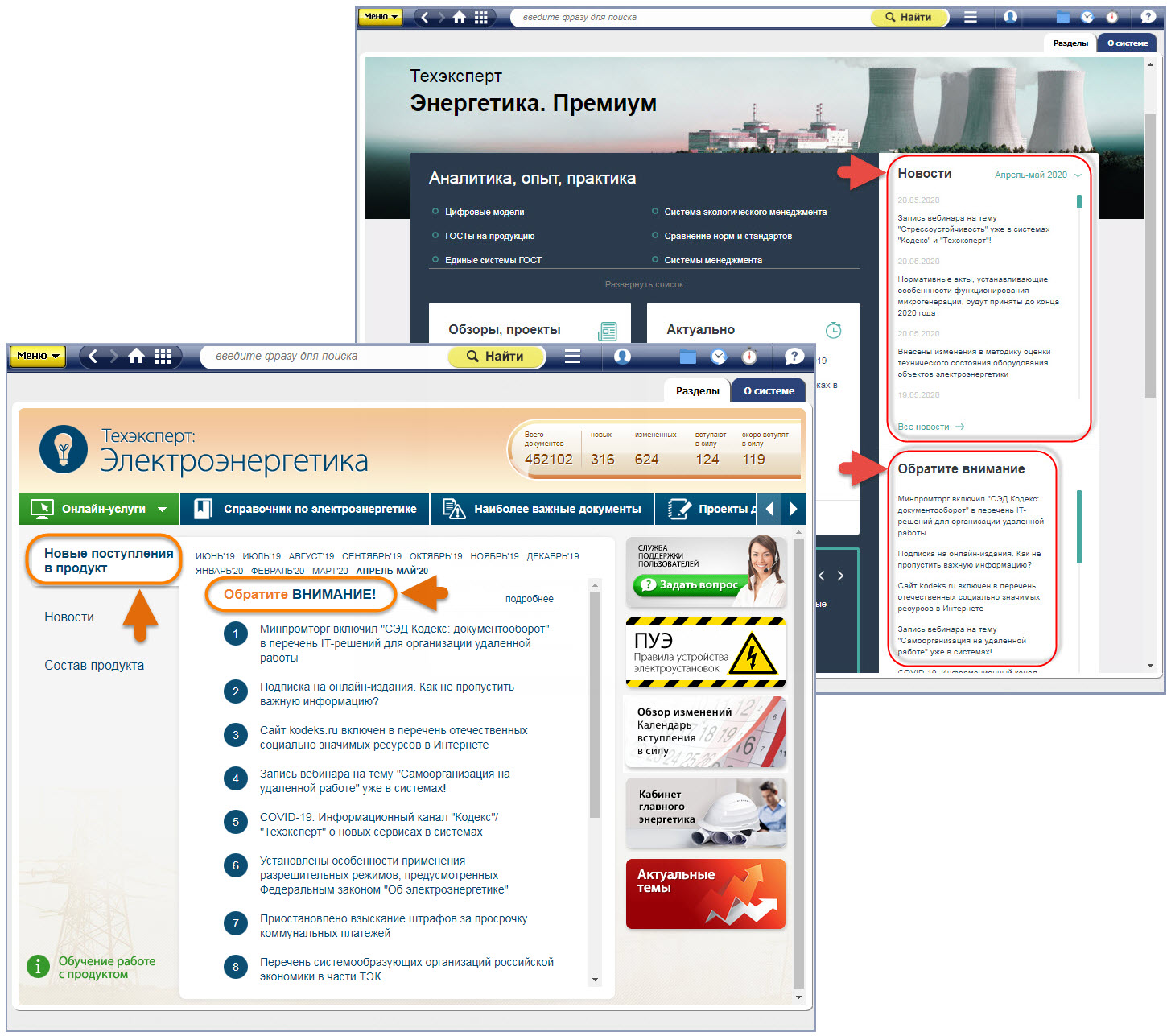 Также на главной странице системы, блок «Обратите внимание» расскажет о наиболее значимых новостях для специалиста энергетической отрасли. Заглянув в рубрику, вы не пропустите важное для вашей работы изменение или нововведение.