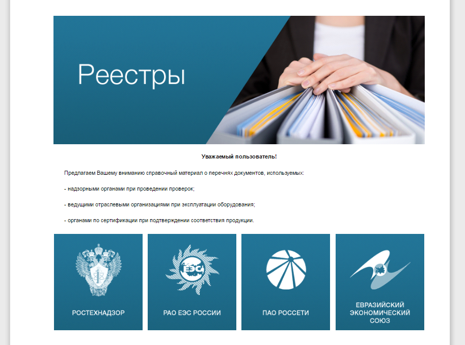 В системе «Энергетика. Премиум» вы можете найти актуальный материал «Реестры в энергетике», который представляет собой подборки документов, установленные:
