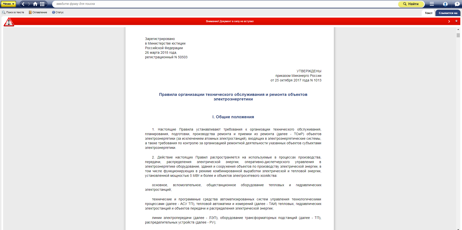 Министерством юстиции Российской Федерации 26 марта 2018 года зарегистрирован приказ Минэнерго России от 25.10.2017 N 1013 «Об утверждении требований к обеспечению надежности электроэнергетических систем, надежности и безопасности объектов электроэнергетики и энергопринимающих установок «Правила организации технического обслуживания и ремонта объектов электроэнергетики» с присвоением регистрационного N 50503.