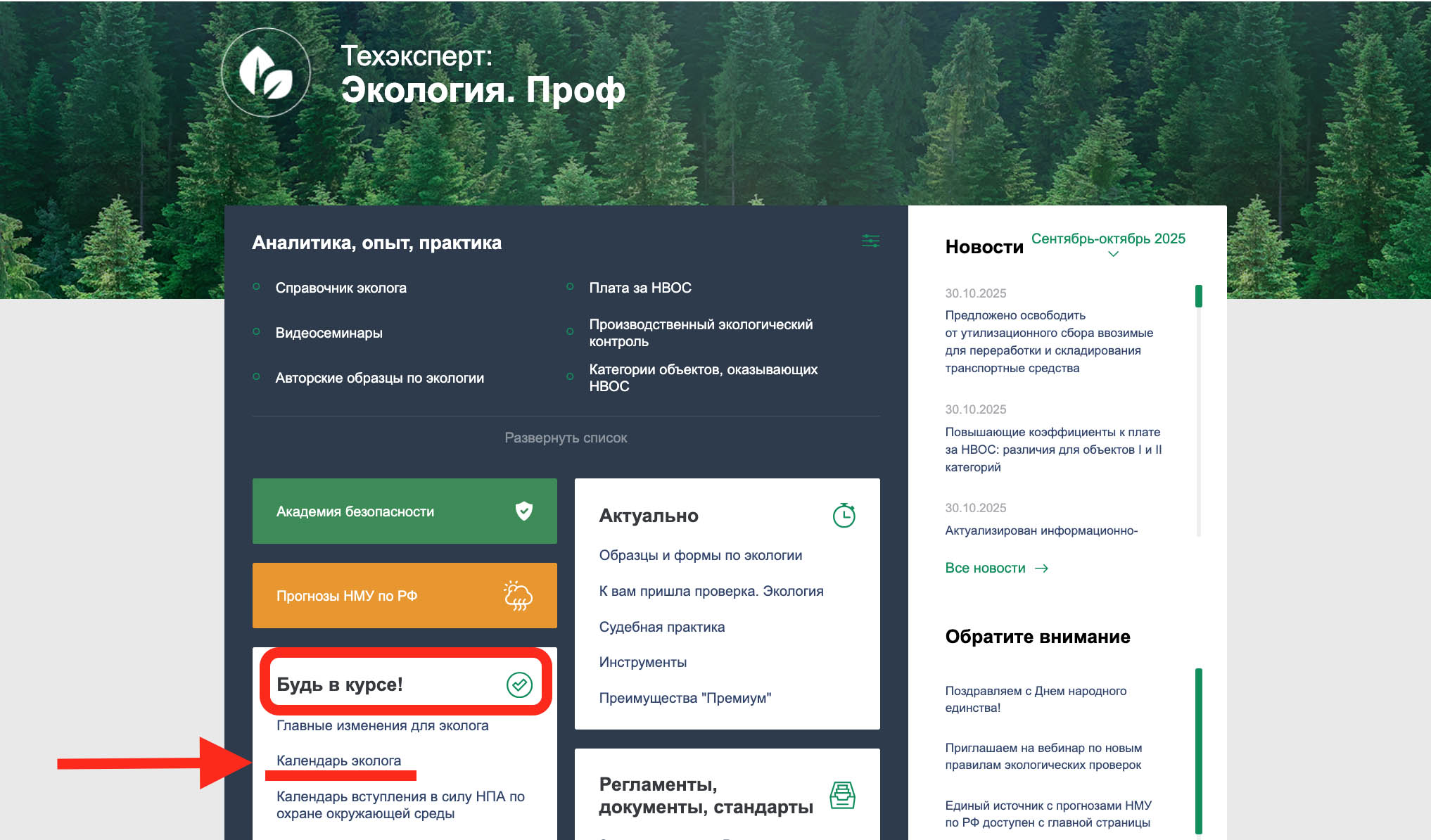 - Перейдите на главную страницу системы «Техэксперт: Экология».