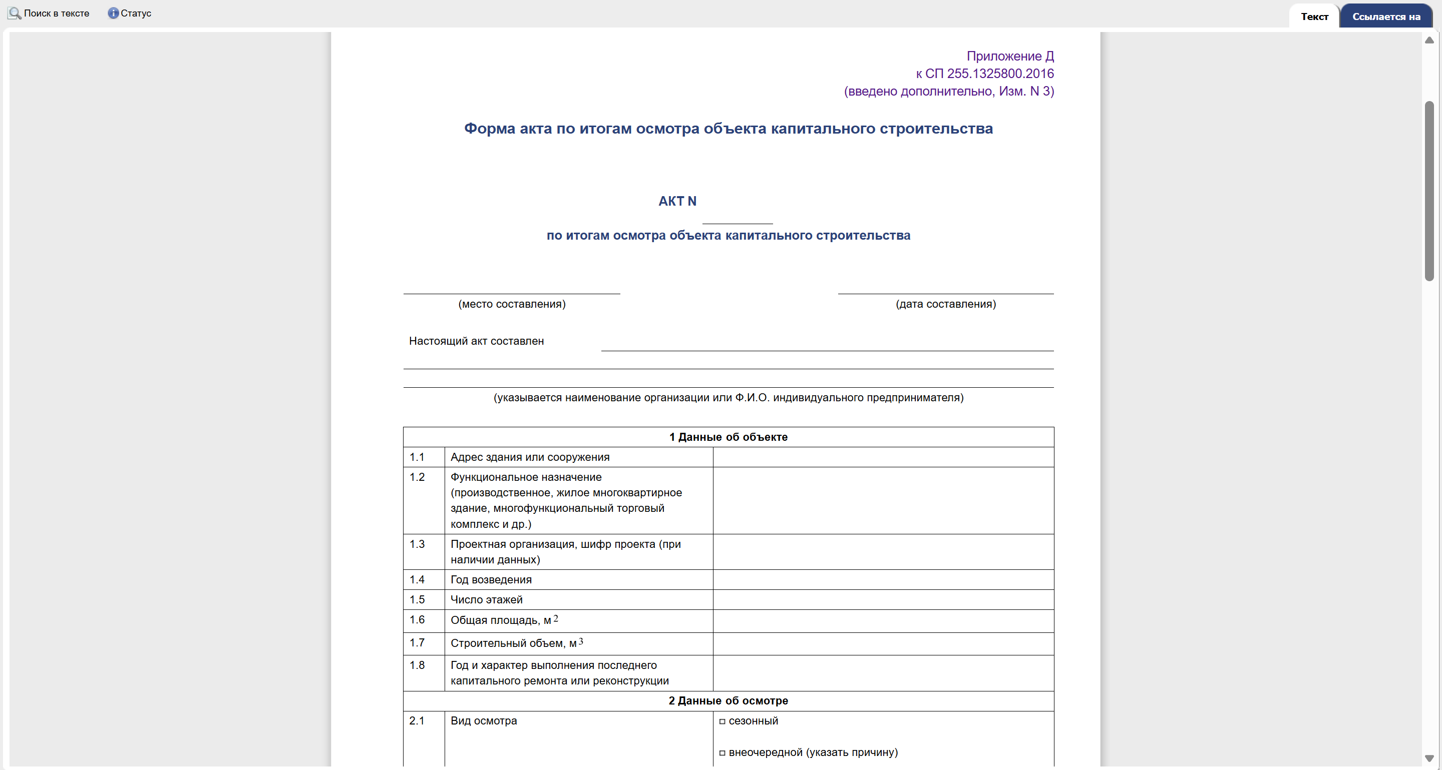 Результаты сезонного осмотра фиксируют в акте по итогам осмотра объекта капитального строительства по форме приложения Д.