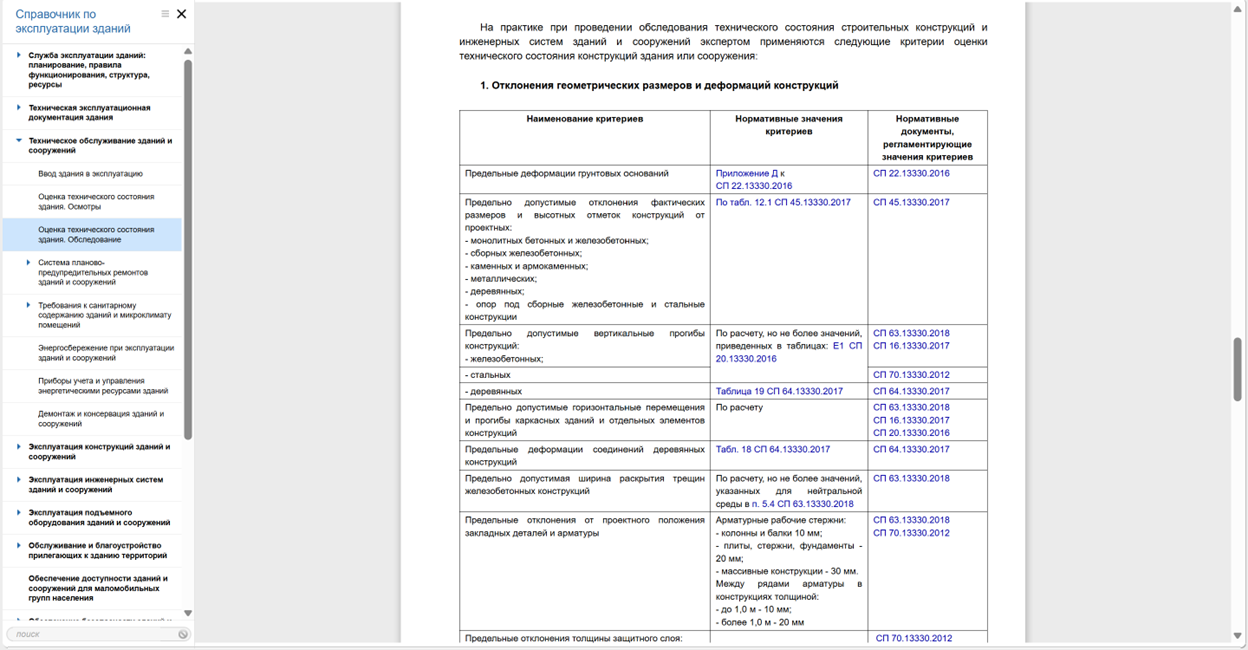 Все ссылки ведут на документы в системах «Техэксперт: Эксплуатация зданий». Если ссылки неактивны или при переходе возникает ошибка — вероятно, вы не являетесь пользователем одной из версий систем.