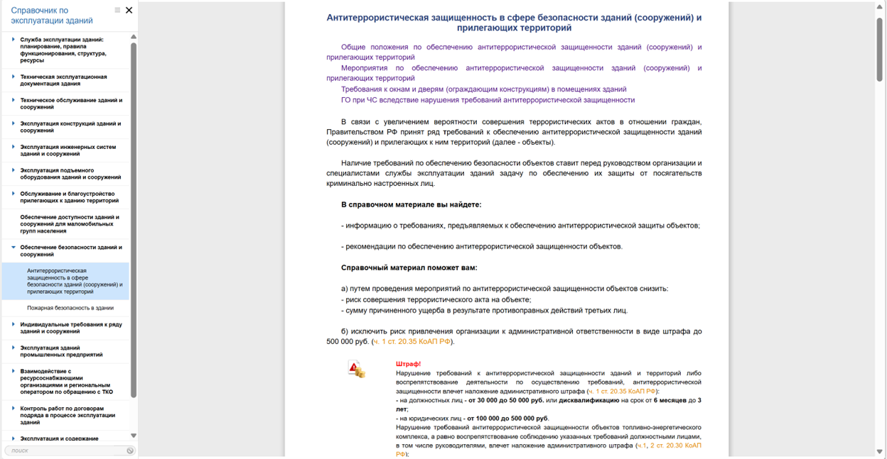 В системах «Техэксперт: Эксплуатация зданий» ознакомьтесь с дополнительными материалами по теме: «Антитеррористическая защищенность в сфере безопасности зданий (сооружений) и прилегающих территорий».
