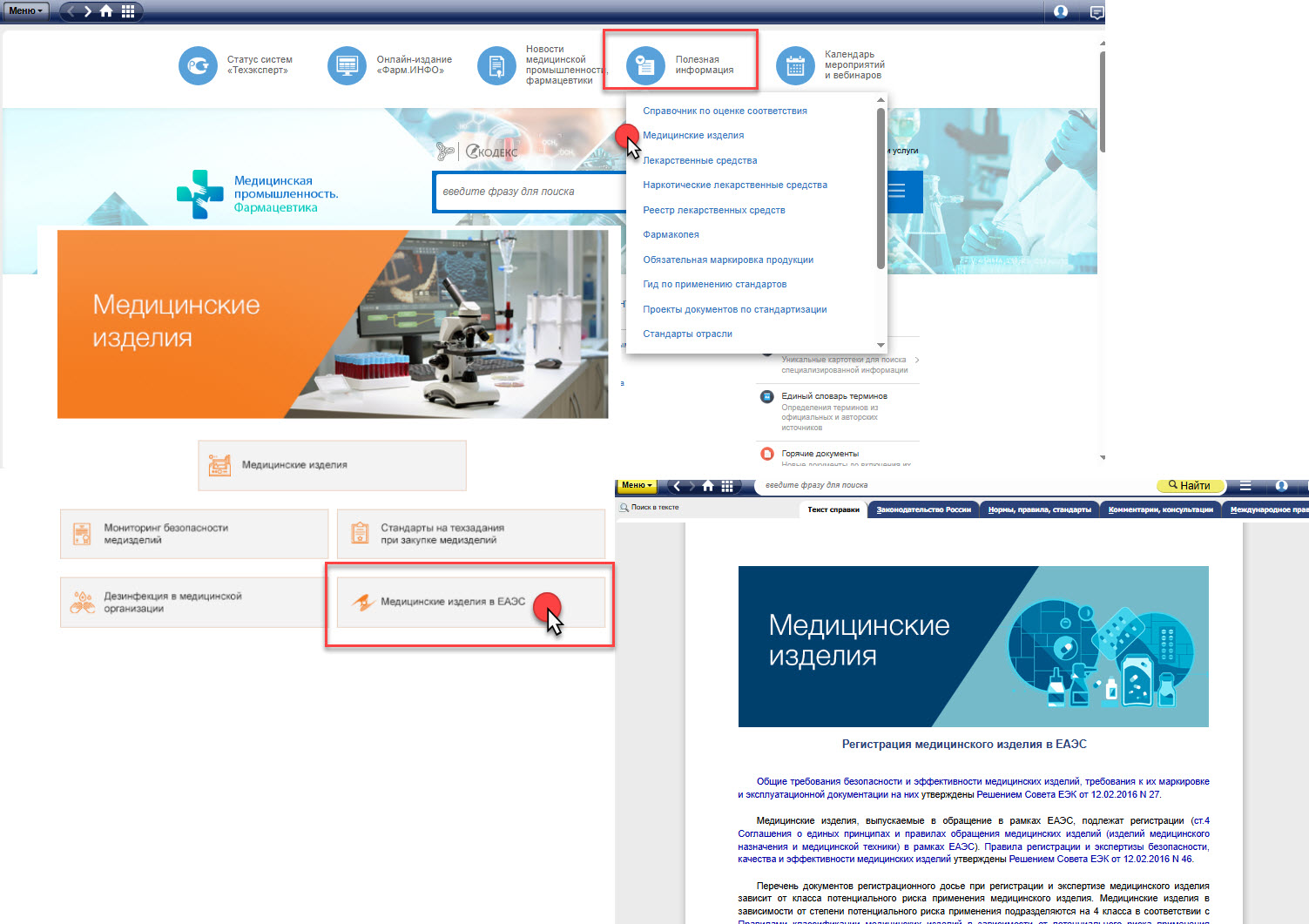 Для успешной навигации в постоянно обновляющихся требованиях ЕАЭС критически важно иметь доступ к проверенной и структурированной информации. В системе «Техэксперт: Медицинская промышленность. Фармацевтика» специалисты отрасли найдут специально разработанную справку «Медицинские изделия в ЕАЭС». Этот ресурс аккумулирует самую полную информацию о всех нюансах регистрационной процедуры: от общих требований безопасности и эффективности медицинских изделий до специфики их маркировки, производства и обращения в рамках Союза. Работать с актуальными данными — значит минимизировать риски и эффективно выстраивать стратегию вывода продукции на рынок.