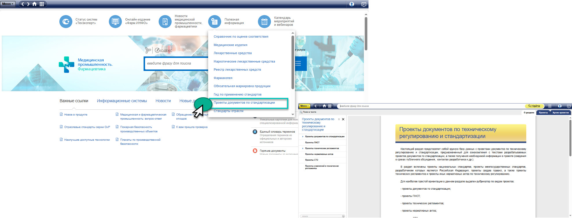 Обратите внимание, что на главной странице комплекта «Техэксперт: Медицинская промышленность. Фармацевтика» под баннером «Полезная информация» существует раздел «Проекты документов по стандартизации». Вы сможете заранее ознакомиться с изменениями и подготовиться к ним. Это не только экономит время, но и способствует более глубокому пониманию предстоящих требований.