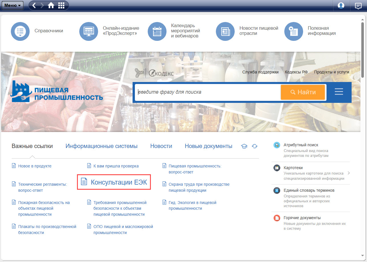 Подборки материалов доступны пользователям комплекта справочных систем «Техэксперт: Пищевая промышленность» на главной странице, в блоке «Важные ссылки», и в дальнейшем будут пополняться.