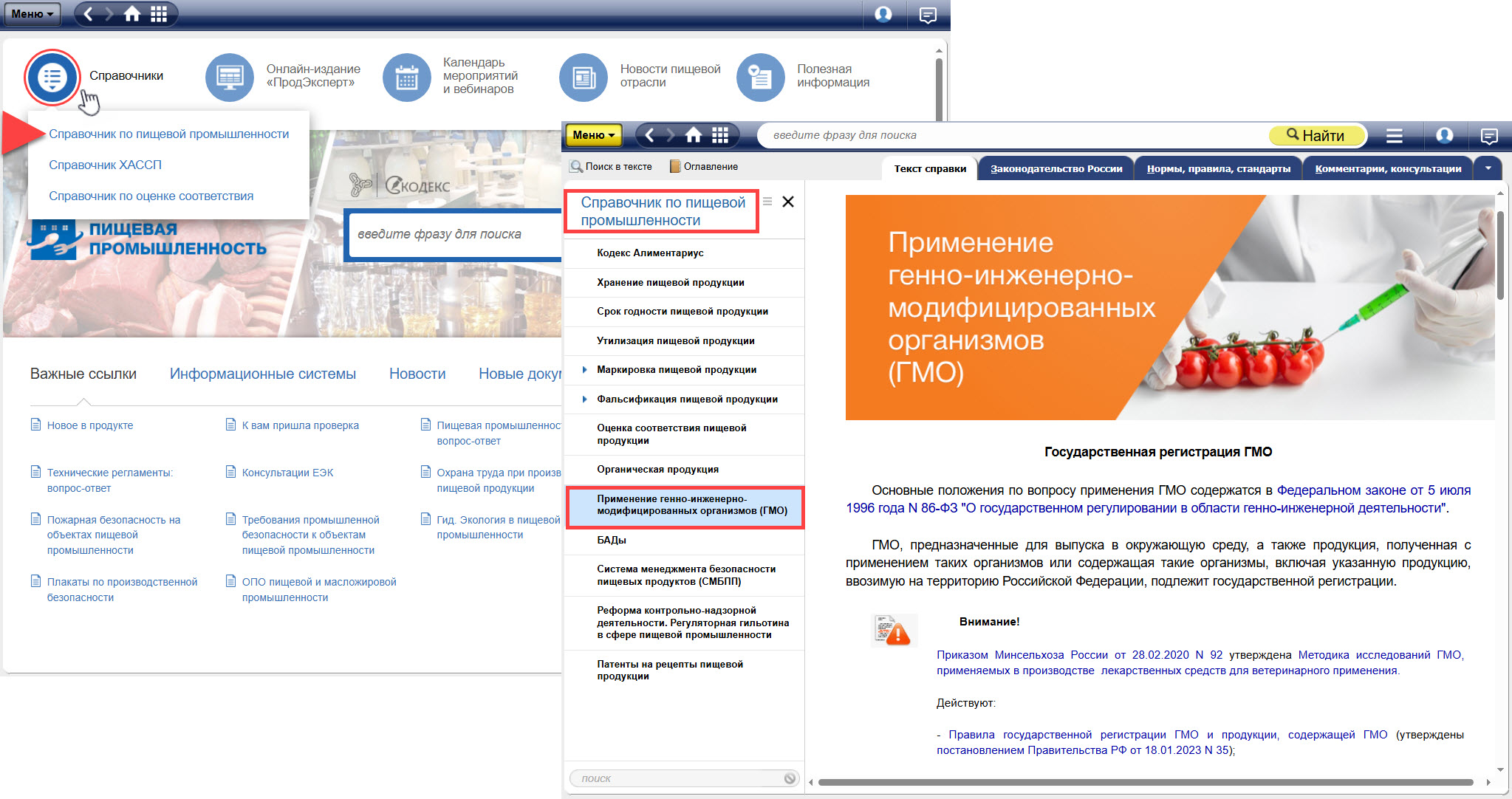 Вопросы, касающиеся генетически модифицированных организмов (ГМО), будоражат потребителей пищевой продукции из-за опасений по поводу их безопасности для здоровья и окружающей среды, а также из-за недостаточного понимания их природы. Но специалистам пищевой отрасли важно выстроить работу по контролю ГМО в пищевой продукции беспристрастно и в соответствии с действующими требованиями. Поможет в этом специальный справочный материал от «Техэксперт» — «Применение генно-инженерно-модифицированных организмов (ГМО)». В материале представлена исчерпывающая информация о государственной регистрации ГМО, контроле над выпуском ГМО, отслеживании наличия ГМО в пищевой продукции и сельскохозяйственных культурах, а также ответственности за нарушения законодательства в области применения ГМО.
