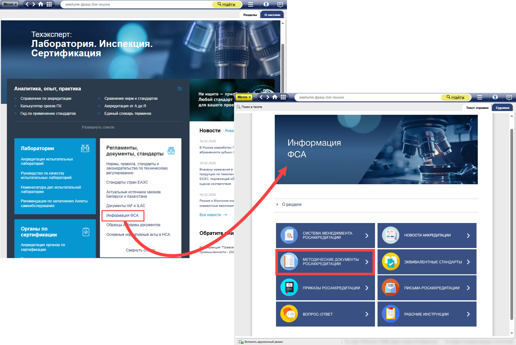 Сервис «Информация ФСА» дает возможность получить подборку документов Росаккредитации, отталкиваясь от вида документа. На сегодняшний день пользователям системы «Техэксперт: Лаборатория. Инспекция. Сертификация» доступна информация по темам: