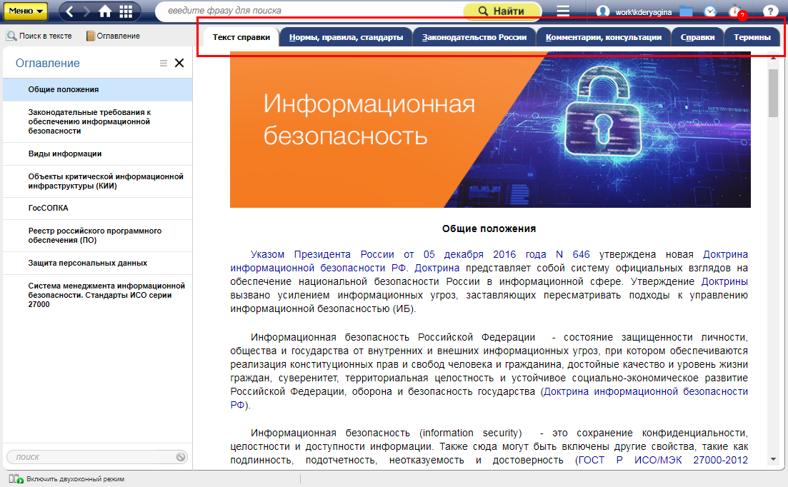 В едином пространстве собрана информация по вопросу информационной безопасности, что позволяет изучить тематику со всех сторон: законодательство, опыт других специалистов, нормы и стандарты по теме и дополнительная справочная информация.