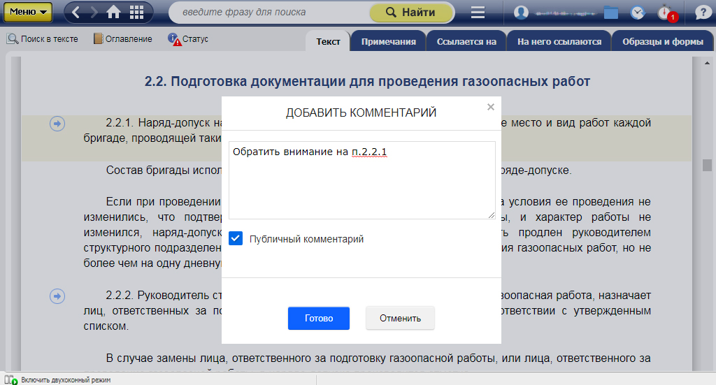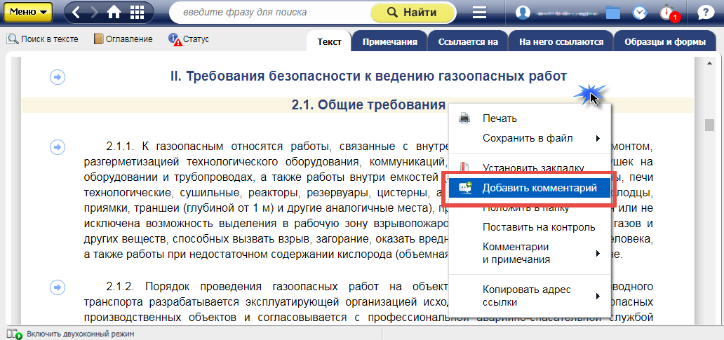 Ознакомившись с новыми правилами или с любым другим документом в системе, вы можете оставлять заметки «на полях» документа для последующей работы с ними.