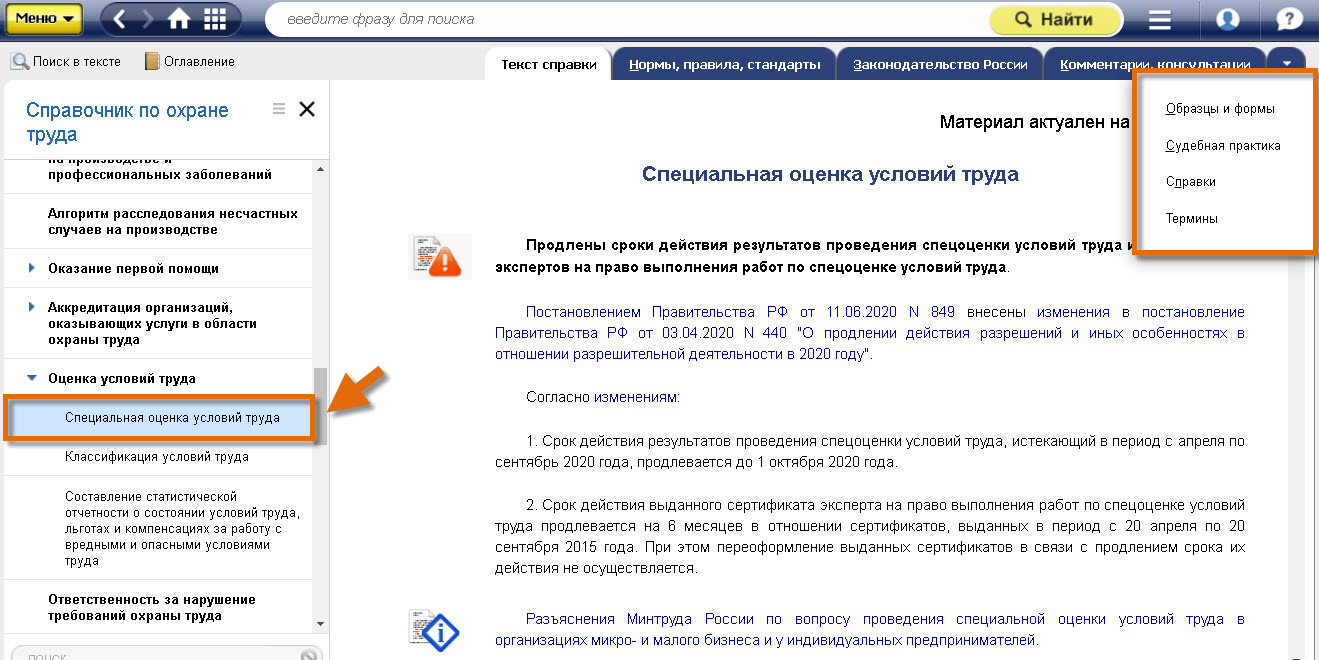 В справочном материале «Специальная оценка условий труда» в системе «Техэксперт: Охрана труда» вы найдете самую полную и актуальную информацию о СОУТ: