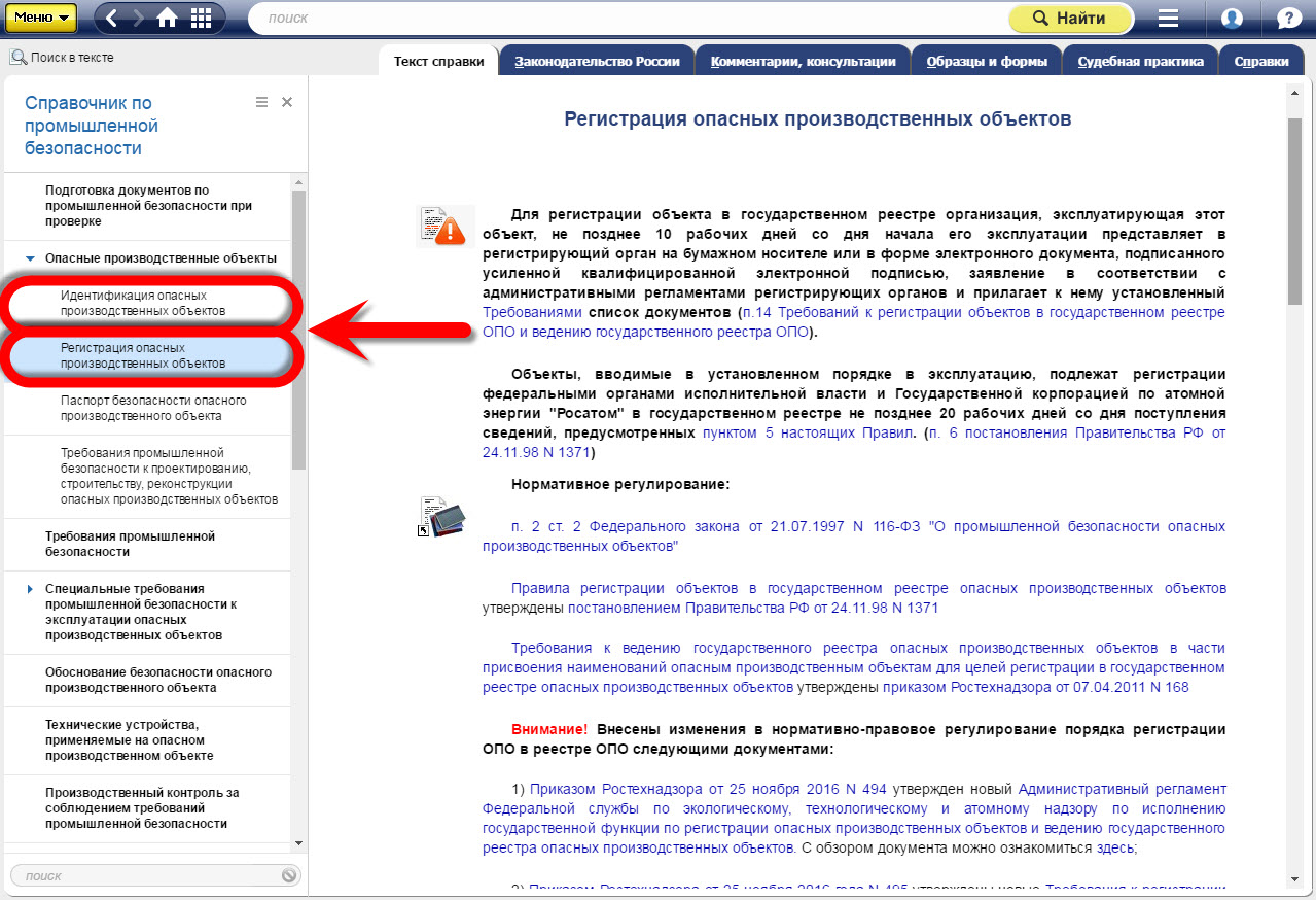 Узнать всю необходимую информацию по идентификации и регистрации ОПО специалист легко может с помощью профессиональной справочной системы «Техэксперт: Промышленная безопасность».