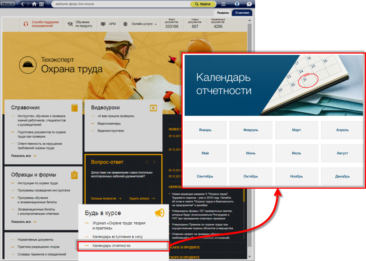 Или под кнопкой «Календарь отчетности» на синей панели в системах «Техэксперт: Пожарная безопасность» и «Техэксперт: Промышленная безопасность».