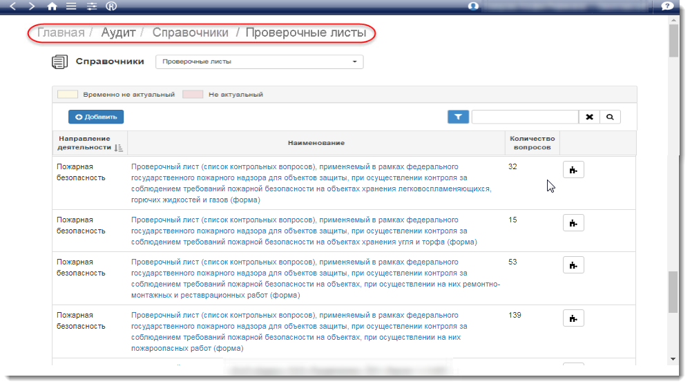 Заблаговременно подготовиться к визиту инспекторов госпожнадзора поможет модуль «Управление аудитами» интегрированной системы производственной безопасности ИСУПБ «Техэксперт». Главным достоинством модуля являются актуальные проверочные листы (перечень критериев, соответствие которым будет проверять инспектор ГПН). Таким образом, вы имеете возможность запланировать предварительный аудит по этим критериям.