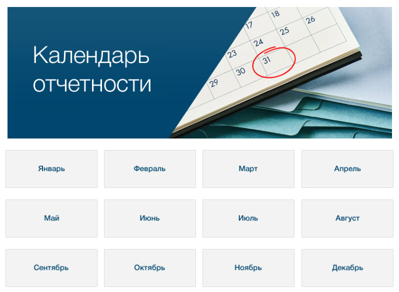 - вся отчётность распределена по месяцам, в каждом из которых выделены даты, на которые необходимо обратить внимание;