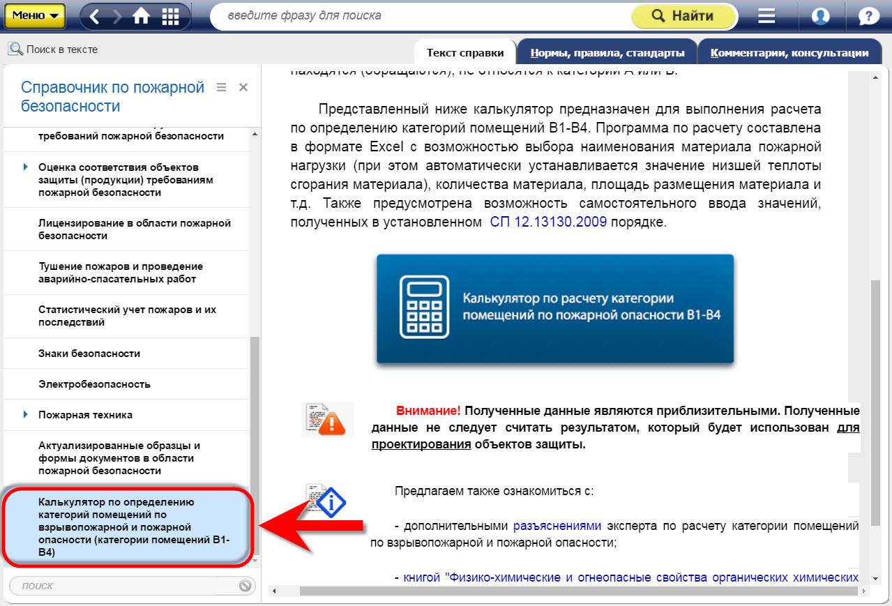 «Калькулятор по расчету категории помещений по пожарной опасности В1-В4» поможет: