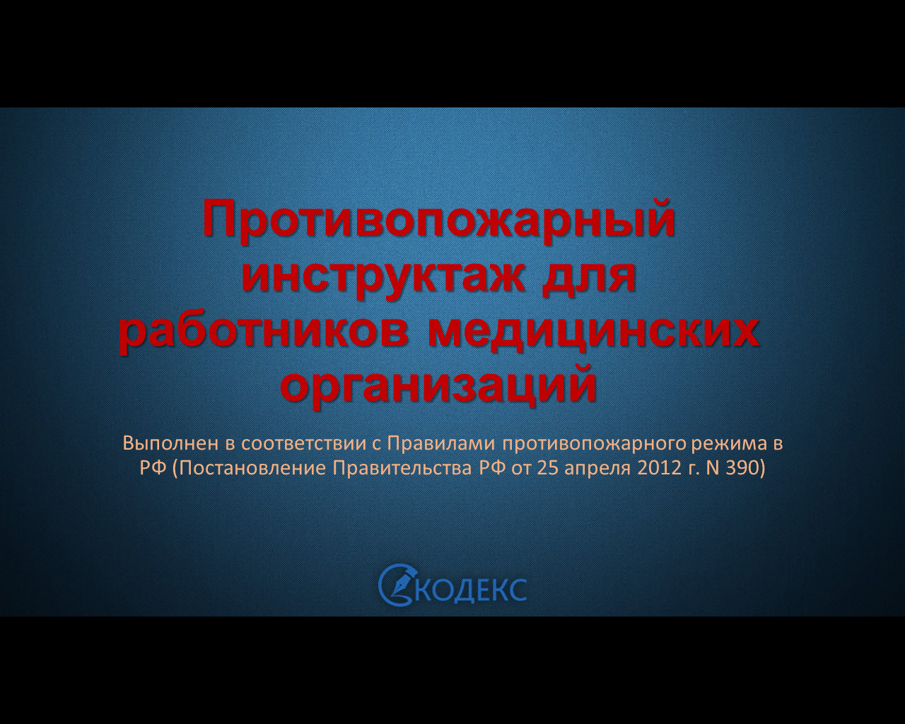 В системе «Техэксперт: Пожарная безопасность» вы найдете все необходимую информацию об обеспечении пожарной безопасности в медицинском учреждении. Также в системе доступен интерактивный тест на знание Правил противопожарного режима для сотрудников медицинских организаций и противопожарный инструктаж в формате презентации.