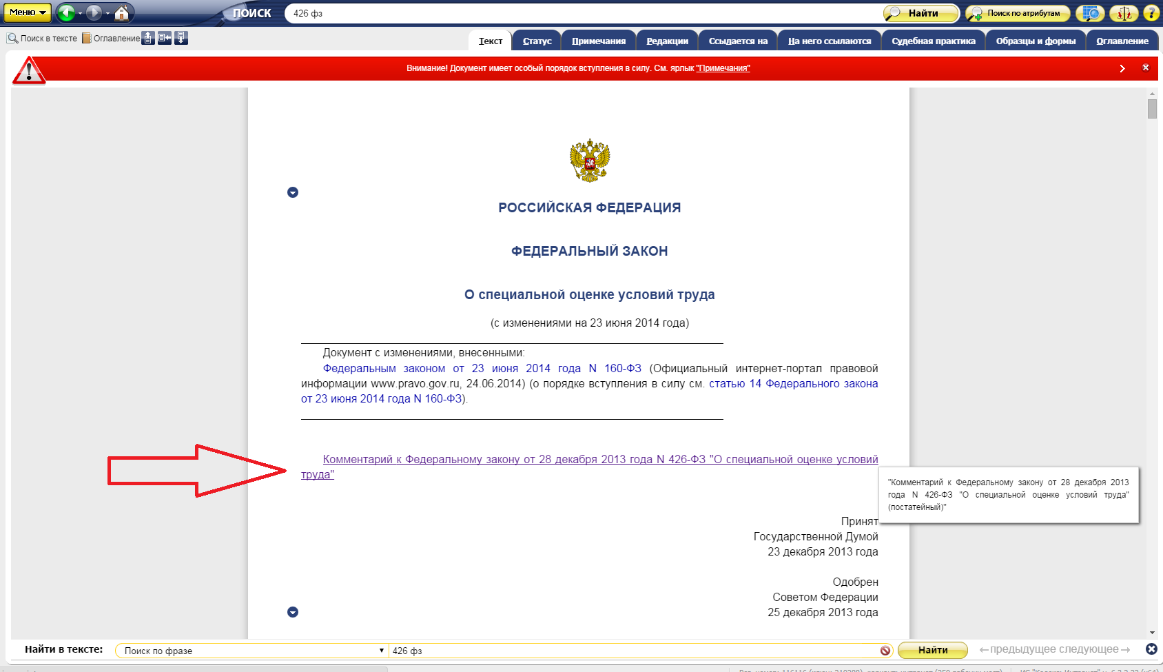 Воспользуйтесь постатейным комментарием к Федеральному закону от 28.12.2013 N 426-ФЗ «О специальной оценке условий труда». Он раскрывает правовые, организационные основы и порядок проведения СОУТ, определяет правовое положение, обязанности и ответственность участников специальной оценки условий труда.