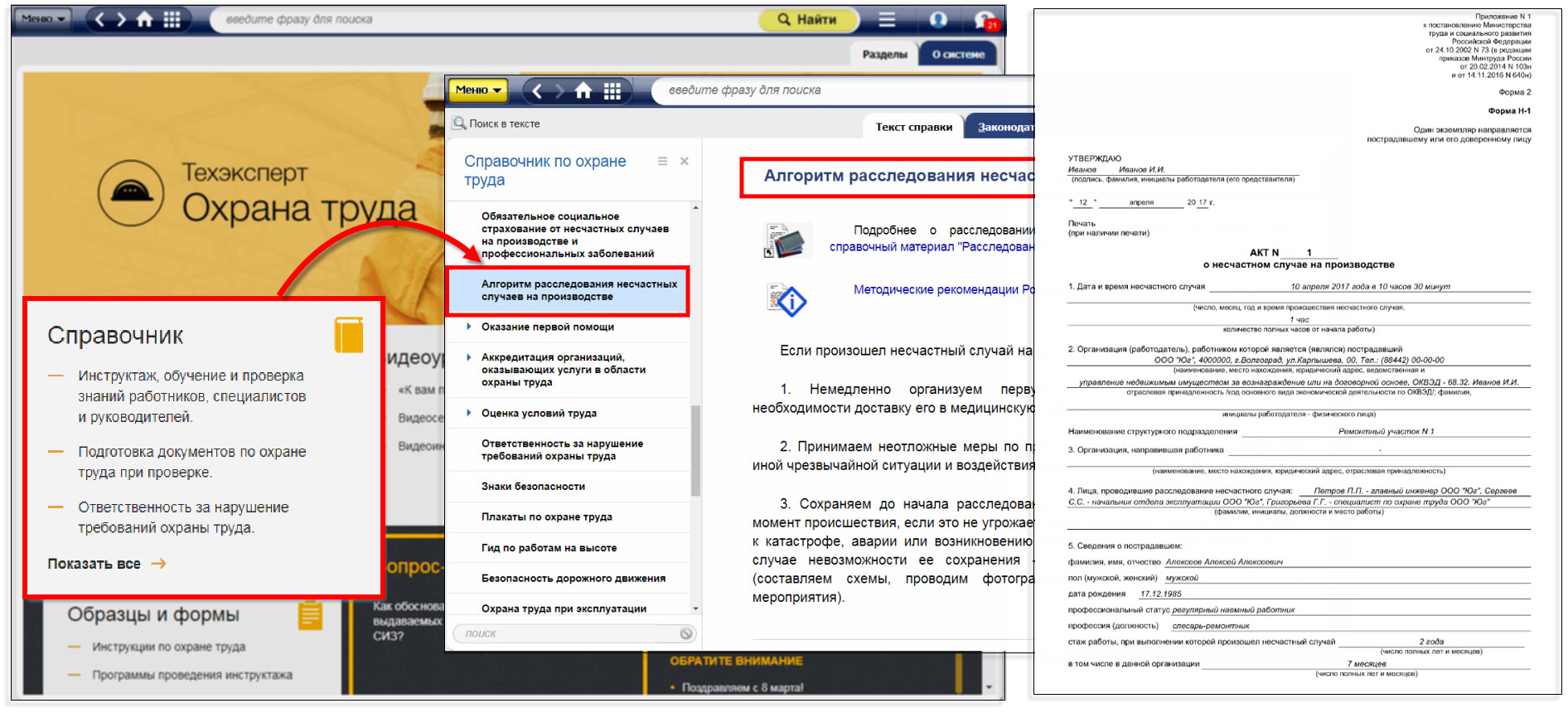 Узнать все о том, как правильно расследовать несчастный случай на производстве и как грамотно оформить все необходимые документы, поможет «Алгоритм расследования несчастных случаев на производстве» в системе «Техэксперт: Охрана труда».