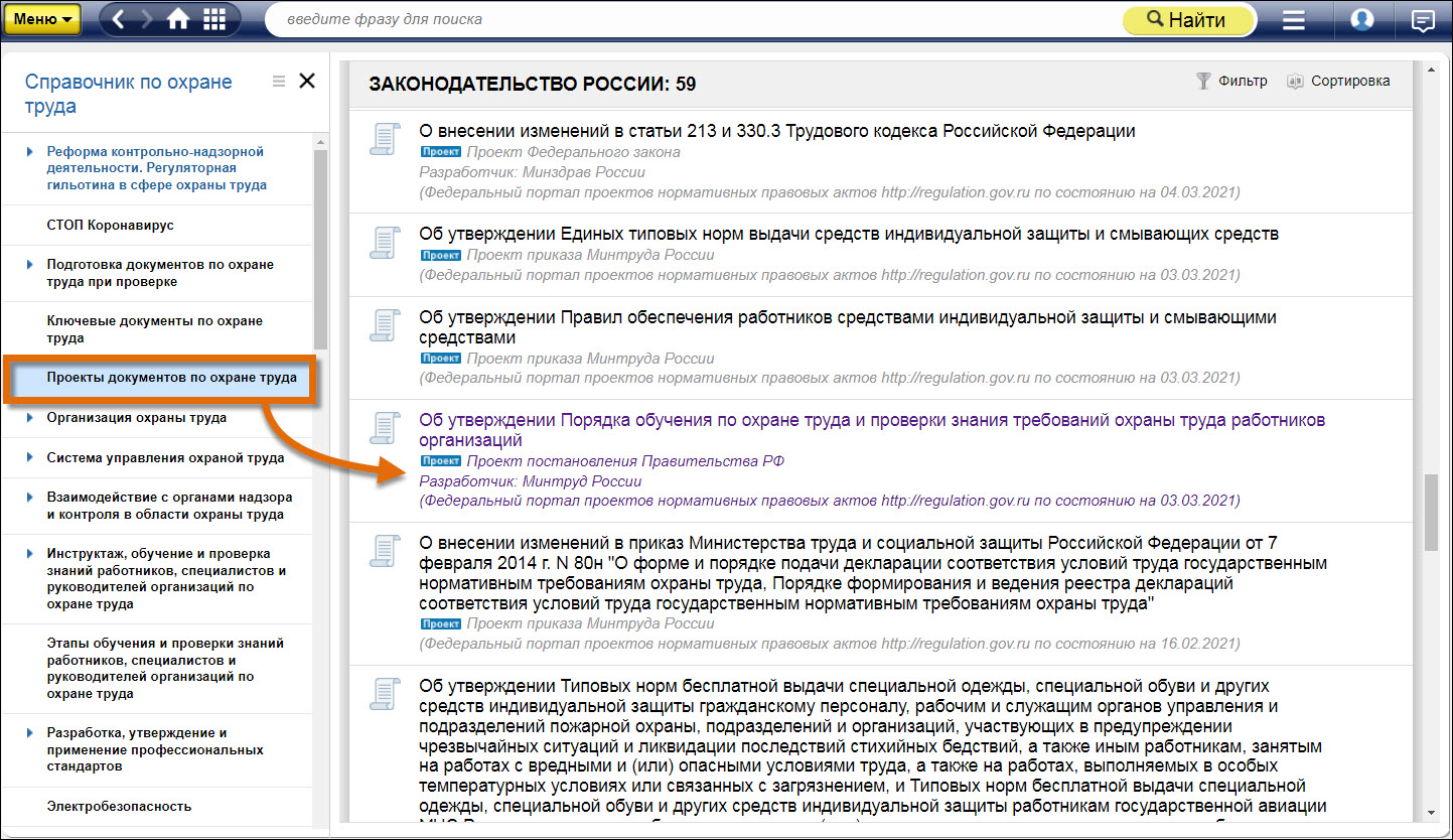 Отслеживайте этапы рассмотрения самых важных законопроектов с помощью сервиса «Проекты документов» в системе «Техэксперт: Охрана труда».