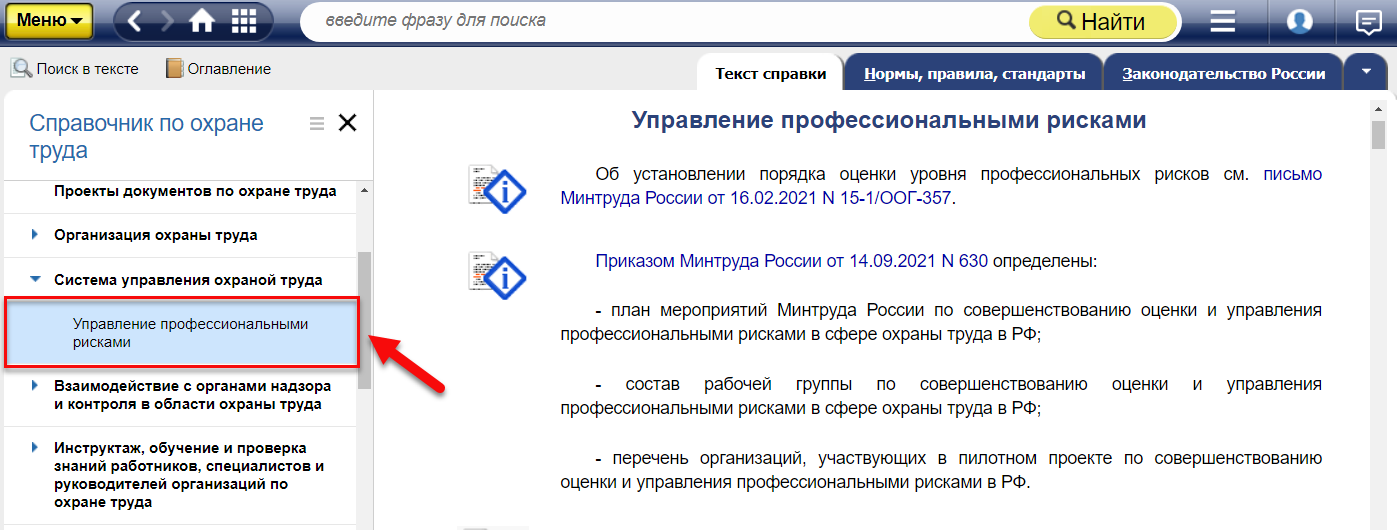 В специализированном материале «Управление профессиональными рисками» в системе «Техэксперт: Охрана труда» вы найдете всю необходимую информацию по теме, а также экспертные статьи и описания методов оценки рисков.