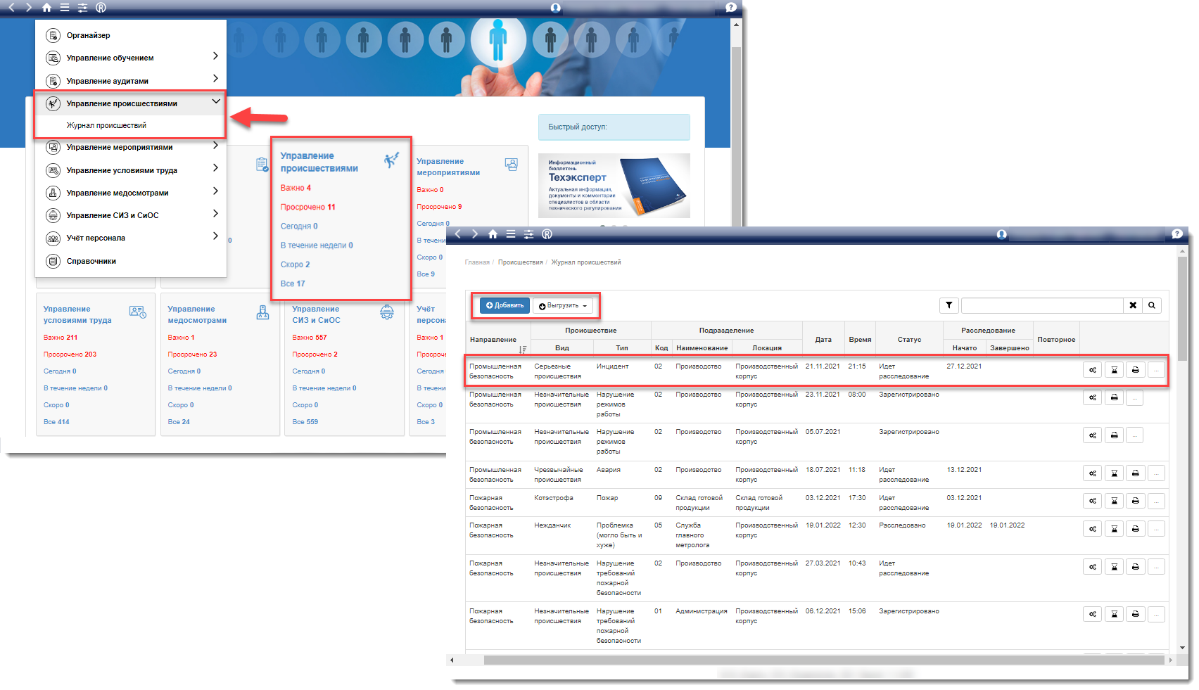 С модулем «Управление происшествиями» интегрированной системы управления производственной безопасностью ИСУПБ «Техэксперт» вы сможете: