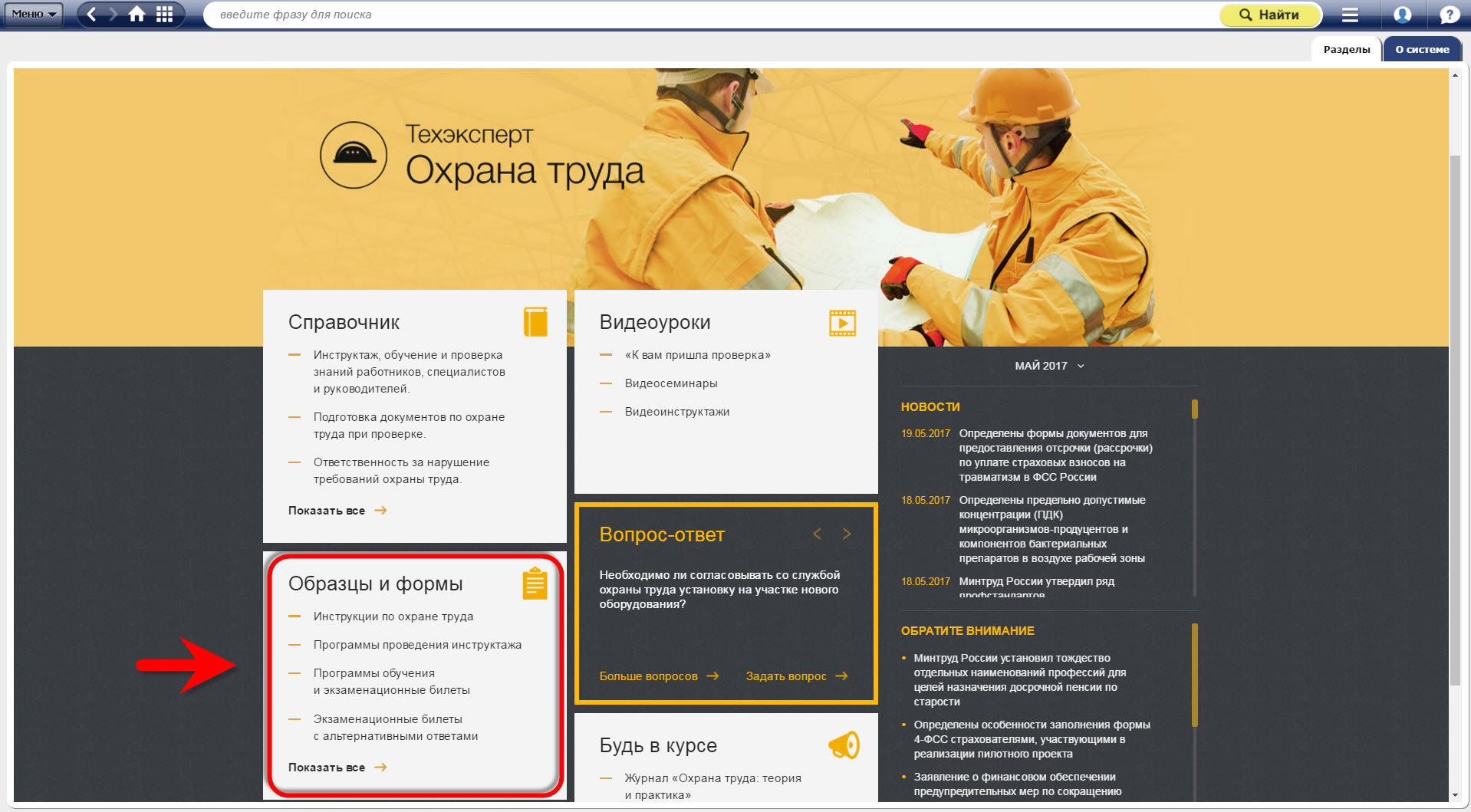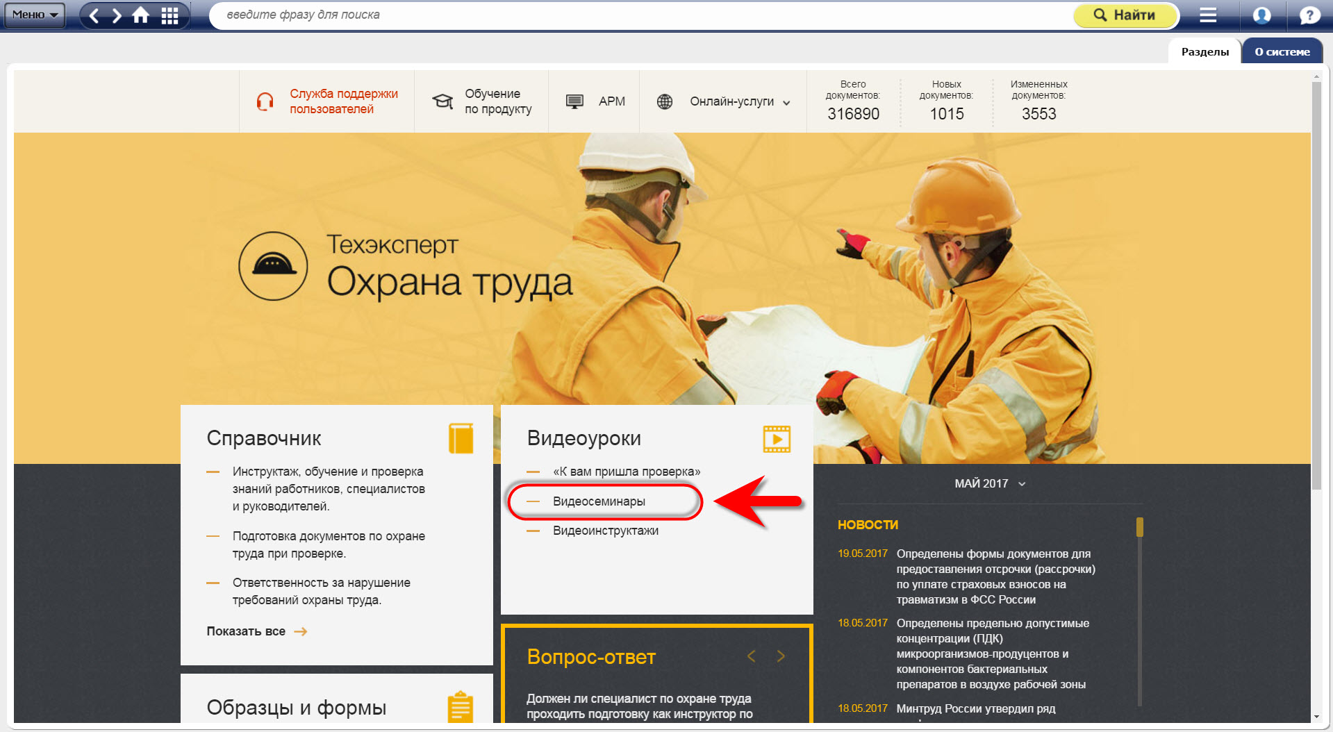 В блоке «Вопрос-ответ» на главной странице системы легко найдется необходимая консультация или комментарий эксперта в области охраны труда!