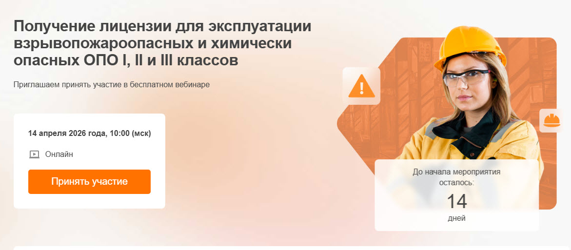 Получение лицензии для эксплуатации взрывопожароопасных и химически опасных ОПО I, II и III классов. Разберем на бесплатном вебинаре!