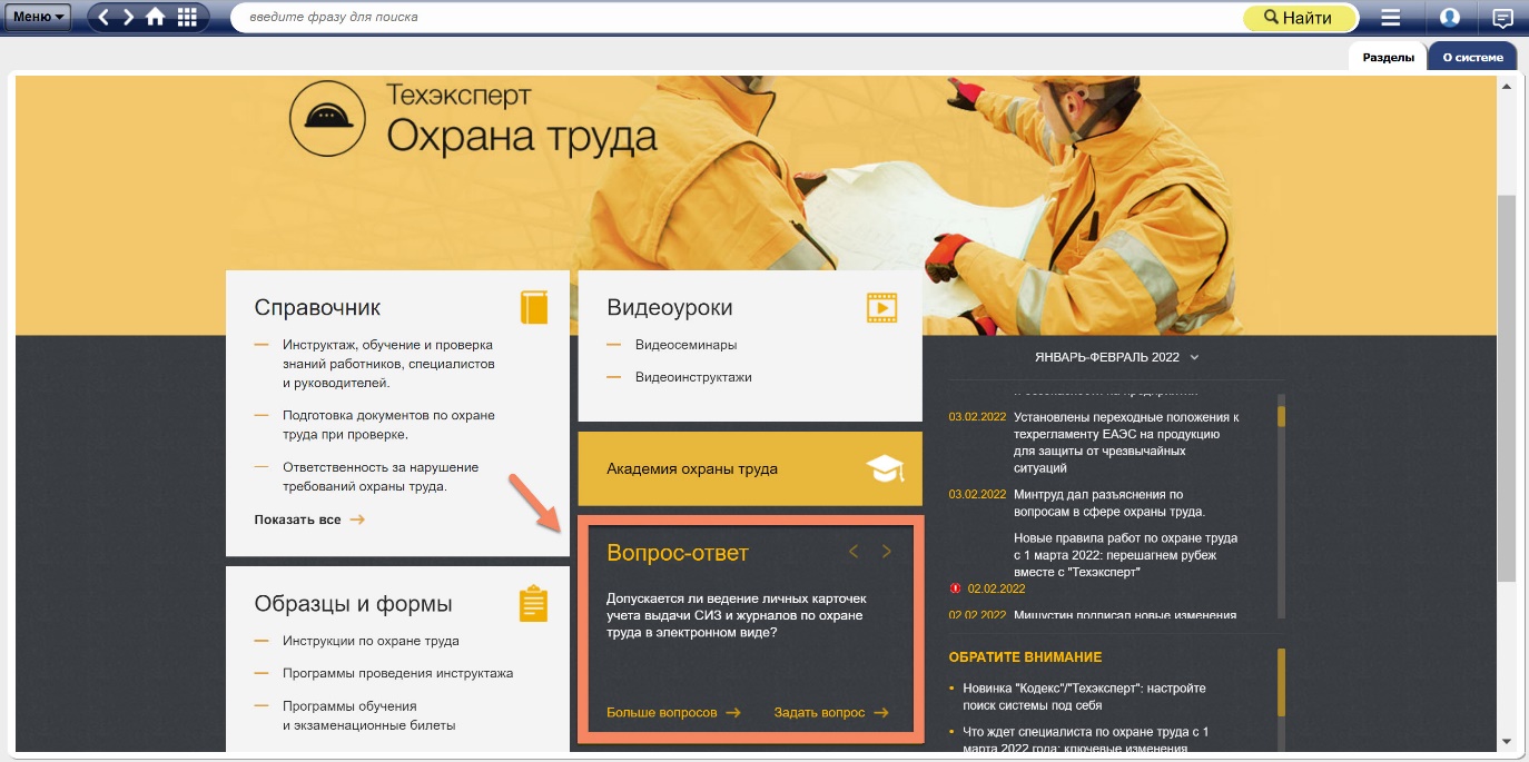 Более того, в систему ежедневно включаются ответы на вопросы по актуальным темам. С полным перечнем экспертных ответов можно ознакомиться в разделе «Вопрос-ответ» на главной странице системы.